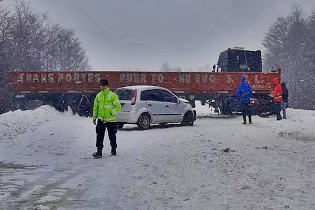Un choque se registro en el kilómetro 3026 de la Ruta Nacional N°3 y el camionero fue multado por no usar cadenas a pesar del estado resbaladizo de la calzada.