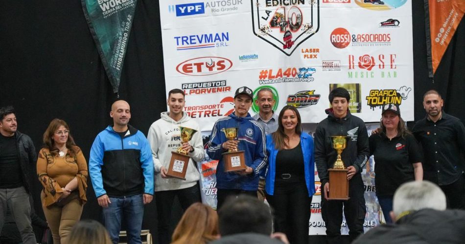 En la noche del domingo el gimnasio del Colegio Haspen fue el escenario para la entrega de trofeos a los ganadores de la edición 40 de la Vuelta a la Tierra del Fuego.