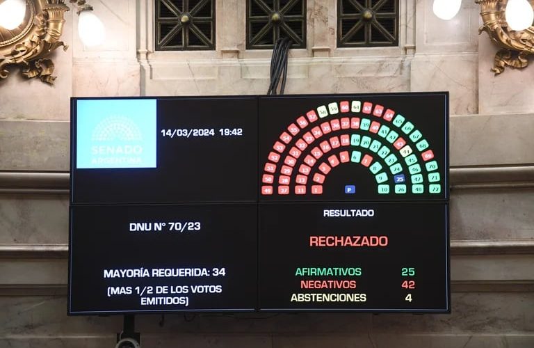 A pesar de que hace casi un mes el Senado de la Nación rechazó el mencionado DNU, la Cámara de Diputados aún no ha conseguido el apoyo necesario para avanzar en un rechazo similar. Diferentes interpretaciones del reglamento y la necesidad de alcanzar un quórum de 129 votos han dificultado el avance en el tratamiento del mega DNU en esta cámara.