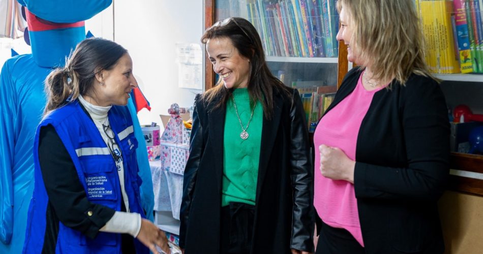 La ministra de Salud de la Provincia, Judit Di Giglio, y la representante de la Organización Panamericana de la Salud (OPS), Pilar Torterola, concurrieron al Centro Infantil Los Enanitos del barrio San Vicente, una de las sedes en la capital fueguina donde se desarrolla el plan de vacunación en el marco de la Semana de las Américas.