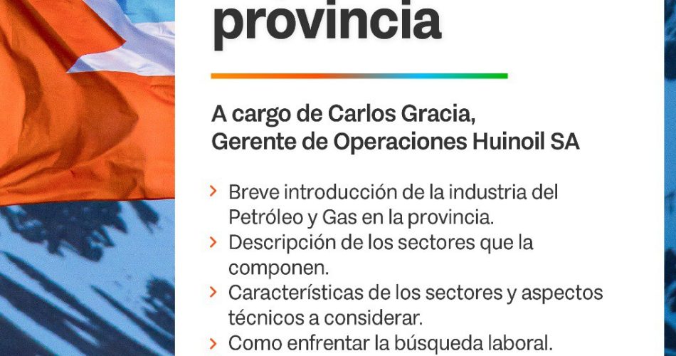 Respecto a esta primera edición el secretario destacó que “lo hacemos junto a Huinoil, una empresa con gran experiencia en el sector petrolero que podrá compartir cuáles son los perfiles laborales más demandados, cómo es la dinámica del sector y qué oportunidades existen para quienes quieren capacitarse y trabajar en esta industria”.