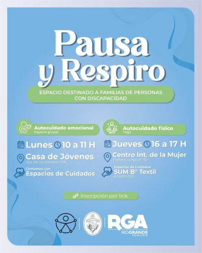 “Pausa y Respiro” cuenta con diferentes actividades: “Autocuidado físico” que incluye sesiones de yoga que se realizan los jueves, de 16 a 17 horas, en el Centro Integral de la Mujer (Prefectura Naval 730). También hay una instancia de “Autocuidado emocional”, el cual es un espacio grupal para familias cuidadoras que se desarrolla los lunes de 10 a 11 horas, en Casa de Jóvenes (Isla de los Estados 1195).