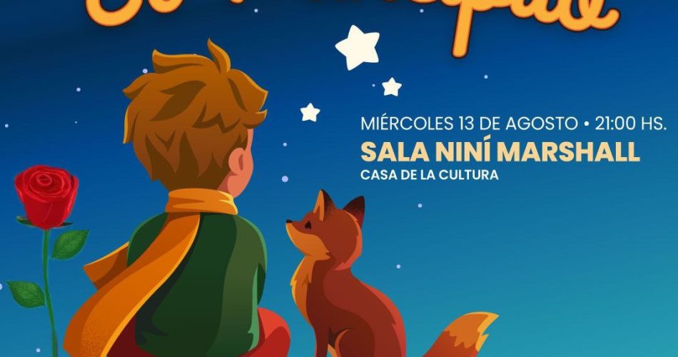 La Secretaría de Cultura y Educación de la Municipalidad de Ushuaia acompañará este miércoles 13 de agosto a las 21:00 horas en la Sala Niní Marshall de la Casa de la Cultura la obra musical “El Principito”, basada en el clásico de Saint Exupery.