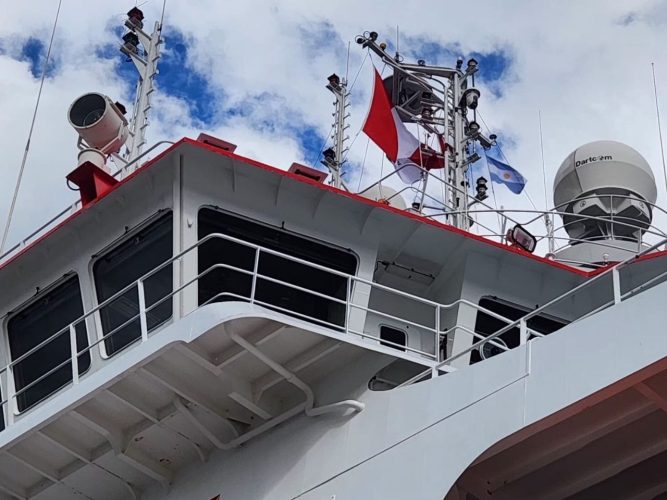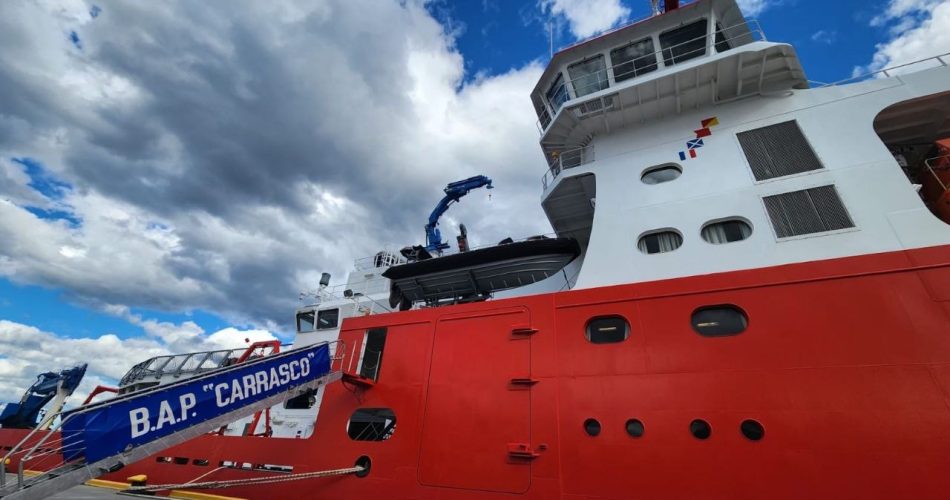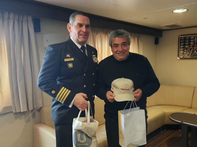El secretario de Relaciones Parlamentarias y Articulación Política de la Municipalidad de Ushuaia, Omar Becerra, visitó el B.A.P. Carrasco, buque científico de última generación de la Marina de Guerra del Perú que llegó a la capital fueguina en el marco de la Campaña Científica ANTAR-XXXII.