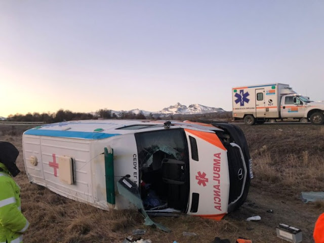 Volcó una ambulancia en la Ruta Nacional N° 3, en la zona del río Milna, a unos 30 kilómetros al sur de Tolhuin.