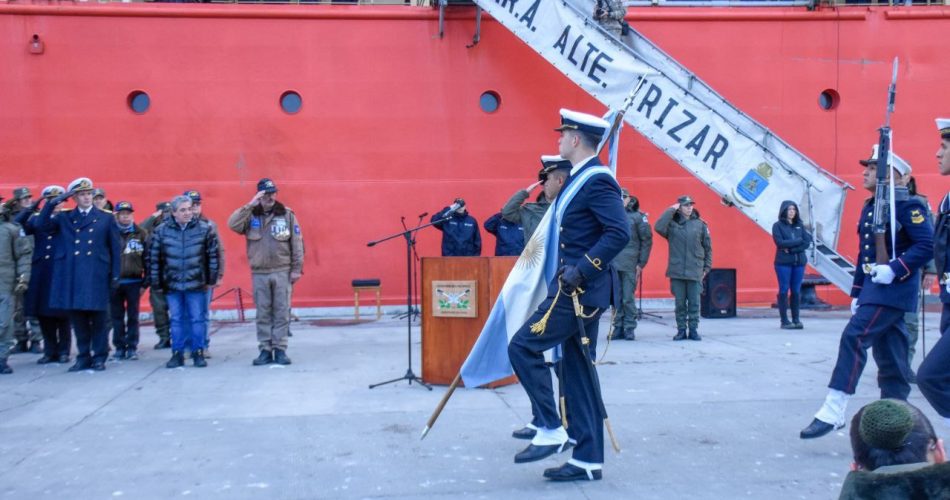 En representación del intendente Walter Vuoto, el secretario de Relaciones Parlamentarias y Articulación Política de la Municipalidad de Ushuaia, Omar Becerra participó del acto en el que Gendarmería Nacional entregó al Comandante del rompehielos Alte. Irizar la bandera argentina que flameó desde el 2 de abril de 2023 al 2 de abril de 2024 en la plaza Islas Malvinas de la ciudad, que había sido donada por esa Fuerza.