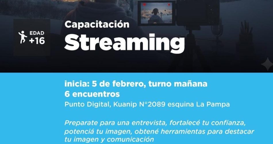 También se dicta la capacitación Streaming, orientada a personas mayores de 16 años, que comienza el 5 de febrero en turno mañana y cuenta con seis encuentros. La propuesta apunta a fortalecer la confianza, la imagen personal y las herramientas comunicacionales vinculadas a la preparación para entrevistas y exposiciones audiovisuales.