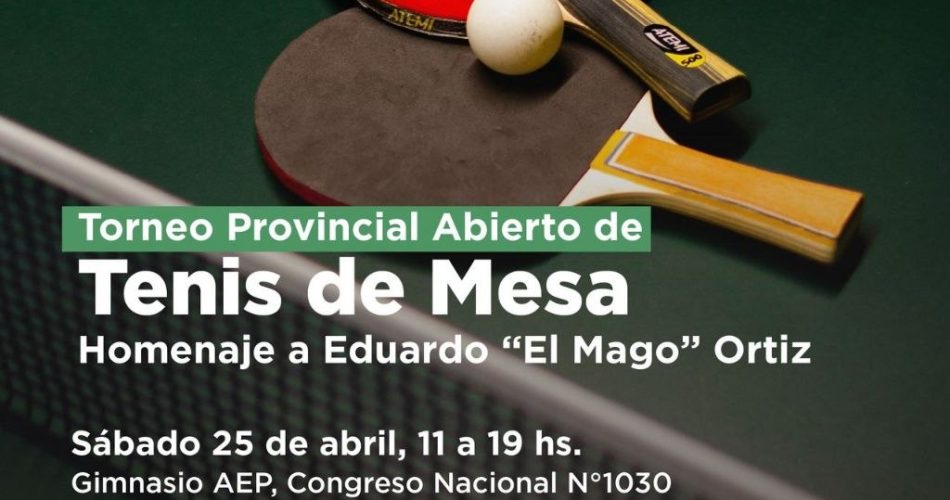 La Municipalidad de Ushuaia, a través de la Secretaría de la Mujer y Desarrollo Humano, invita a la comunidad a participar del Torneo Provincial Abierto de Tenis de Mesa, que se llevará adelante el próximo 25 de abril, de 11 a 19 horas, en el Gimnasio AEP, ubicado en Congreso Nacional 1030.